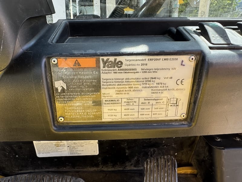 YALE ERP20VF LWB elektromos használt targonca