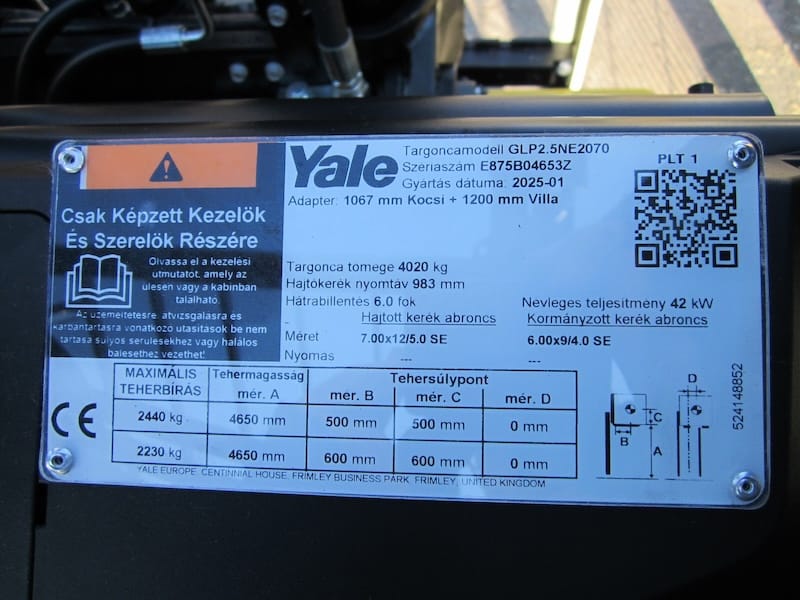 YALE GLP2.5N gázüzemű használt targonca
